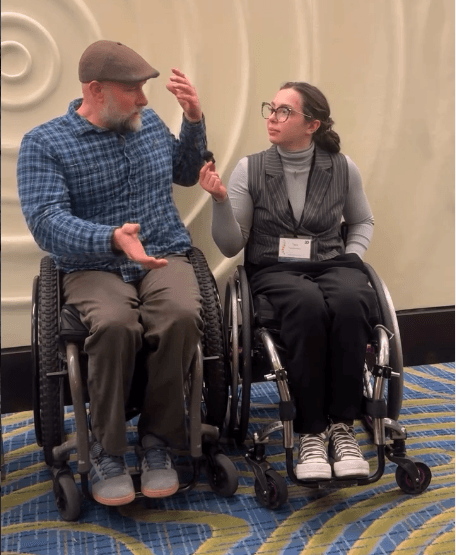 Jason Stoffer explaining to Tara Shetterly at our Symposium this past February how the SCI community is a heterogeneous population - snowflakes! Check out the whole cool, compelling reel that @tara_shett made about SCI!
