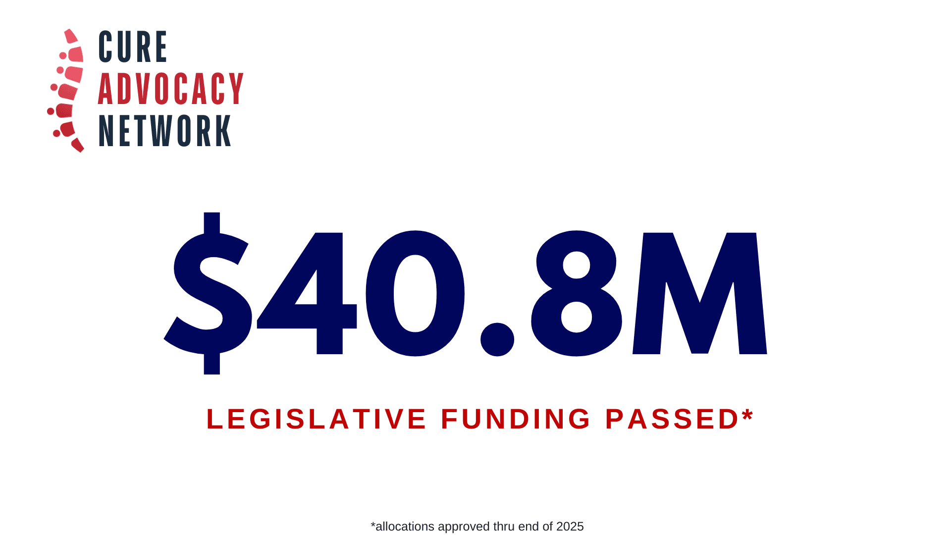 • Accomplishments. Advocates in Pennsylvania successfully passed the $1M Pennsylvania Spinal Cord Disability Research Grant Act in October 2018. CAN activists had been organizing and meeting with legislators in late 2016. They had a Bill introduced in 2017 and were able to help push it through the House and Senate for successful passage on October 17th 2018.